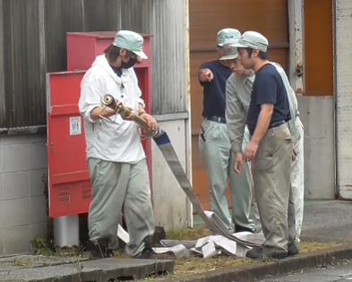 今年の二本松工場は、火災を想定して避難手順や救急蘇生法など、