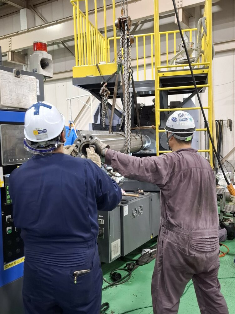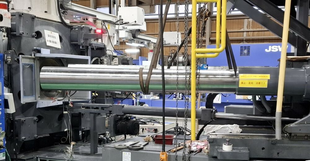 650トンの射出成形機の一部【シリンダーとスクリュー】を交換しました。